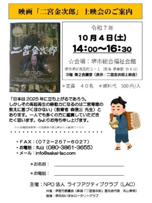 開催場所:堺市総合福祉会館 第3第2会議室 映画「二宮金次郎」ご案内 LAC主催_2025.10.4